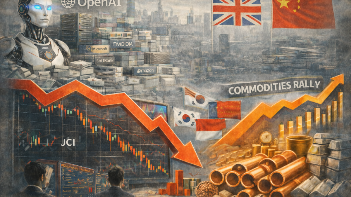 On Thursday, global markets and geopolitics were shaped by a mix of accelerating artificial intelligence investment, volatile Asian equities, renewed UK-China diplomacy, and a powerful rally in commodities.