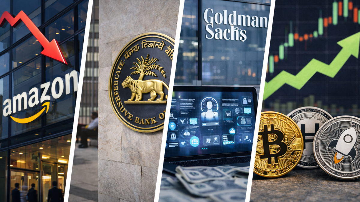 Amazon slides on $200B AI capex fears, RBI holds rates steady, Goldman pivots to AI agents, and Bitcoin rebounds sharply.