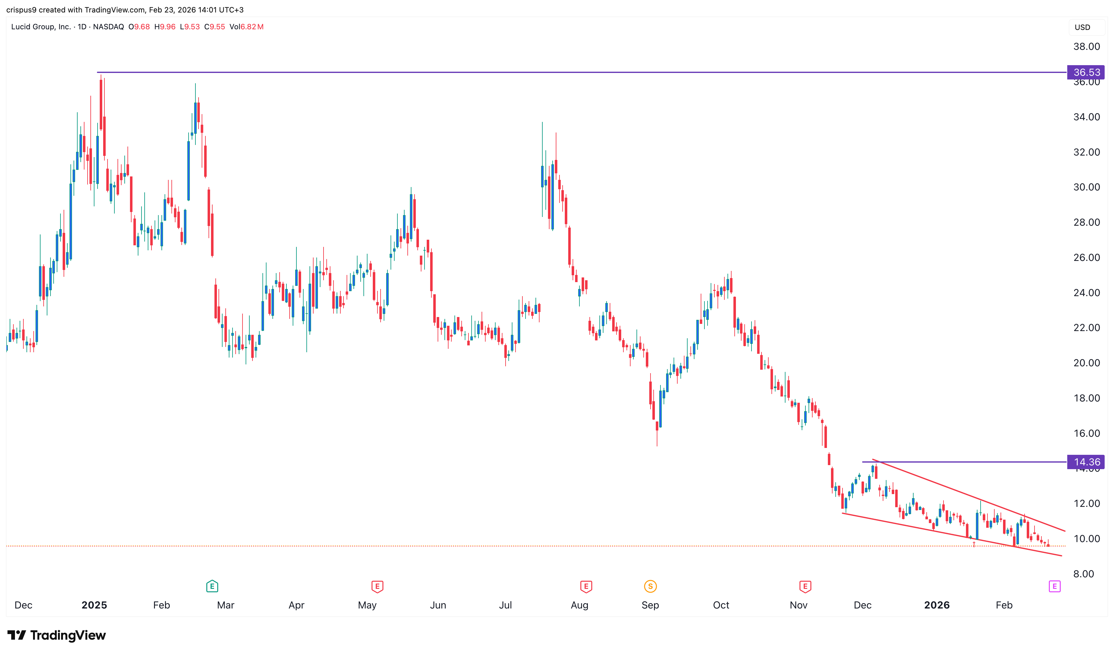 The post Lucid stock falling wedge pattern points to a surge after earnings appeared first on Invezz